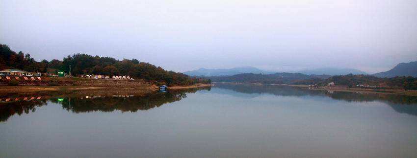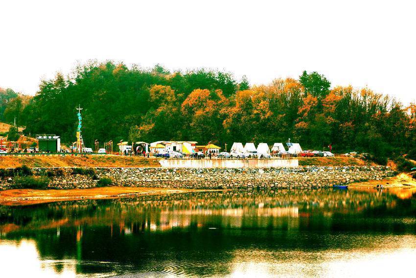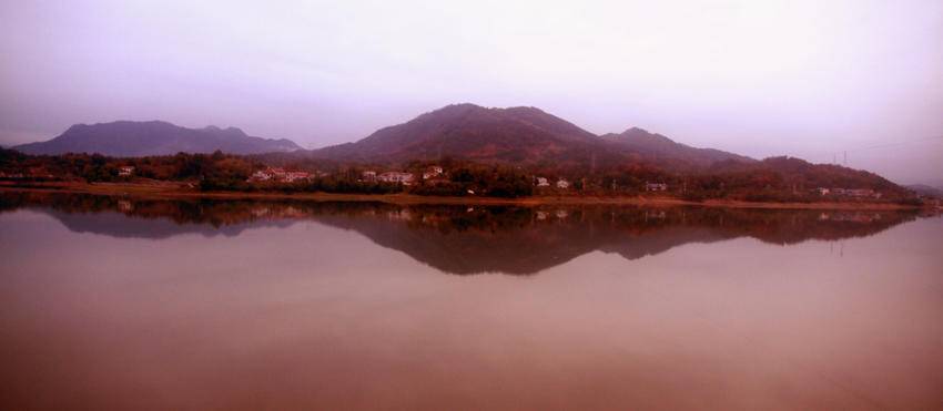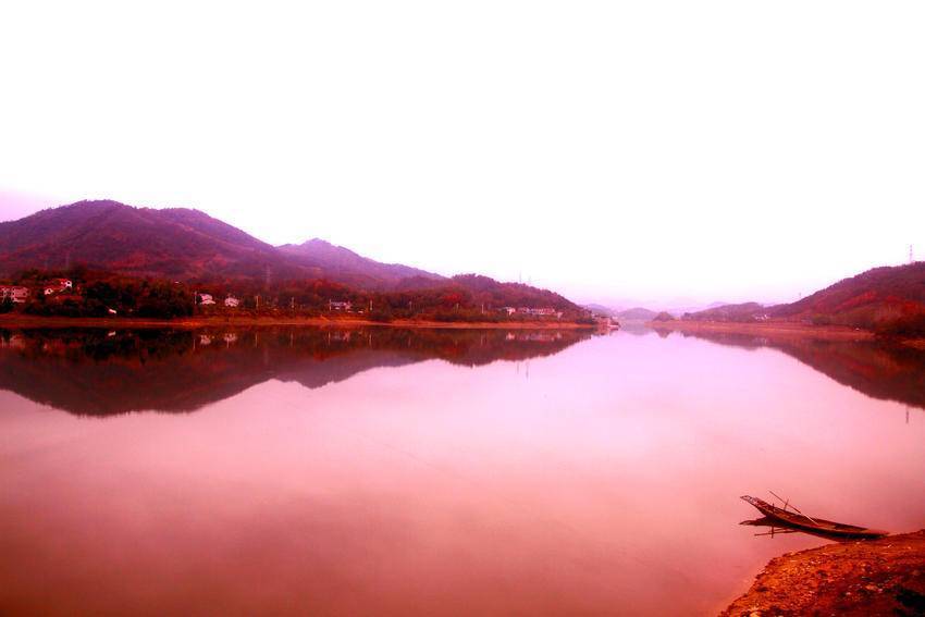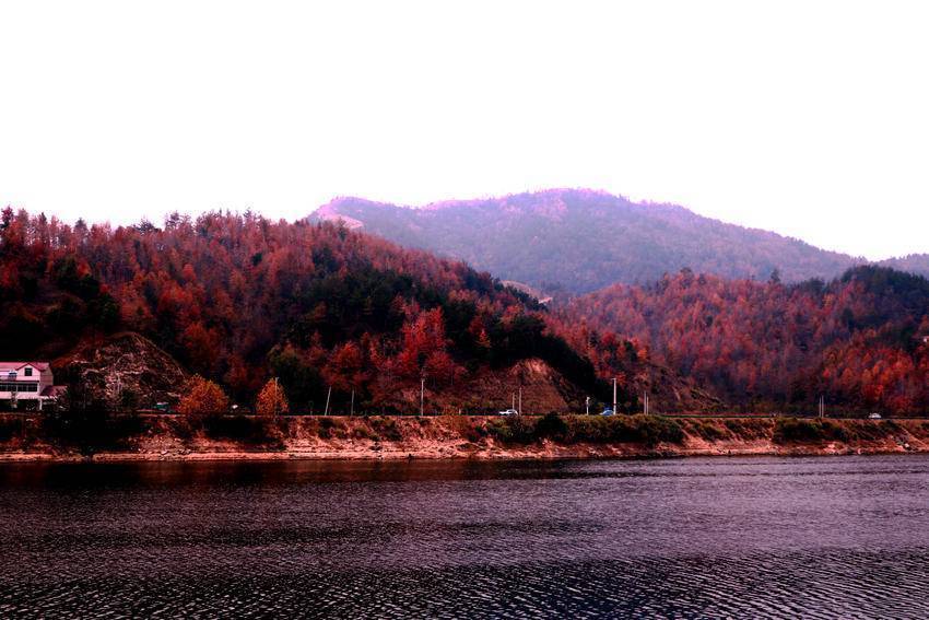 11月23日,英山县两河口碧波荡漾,两岸的温泉镇花园村、温泉镇大垴寨村、方咀乡四棵枫村红叶色彩斑斓如画,美不胜收。